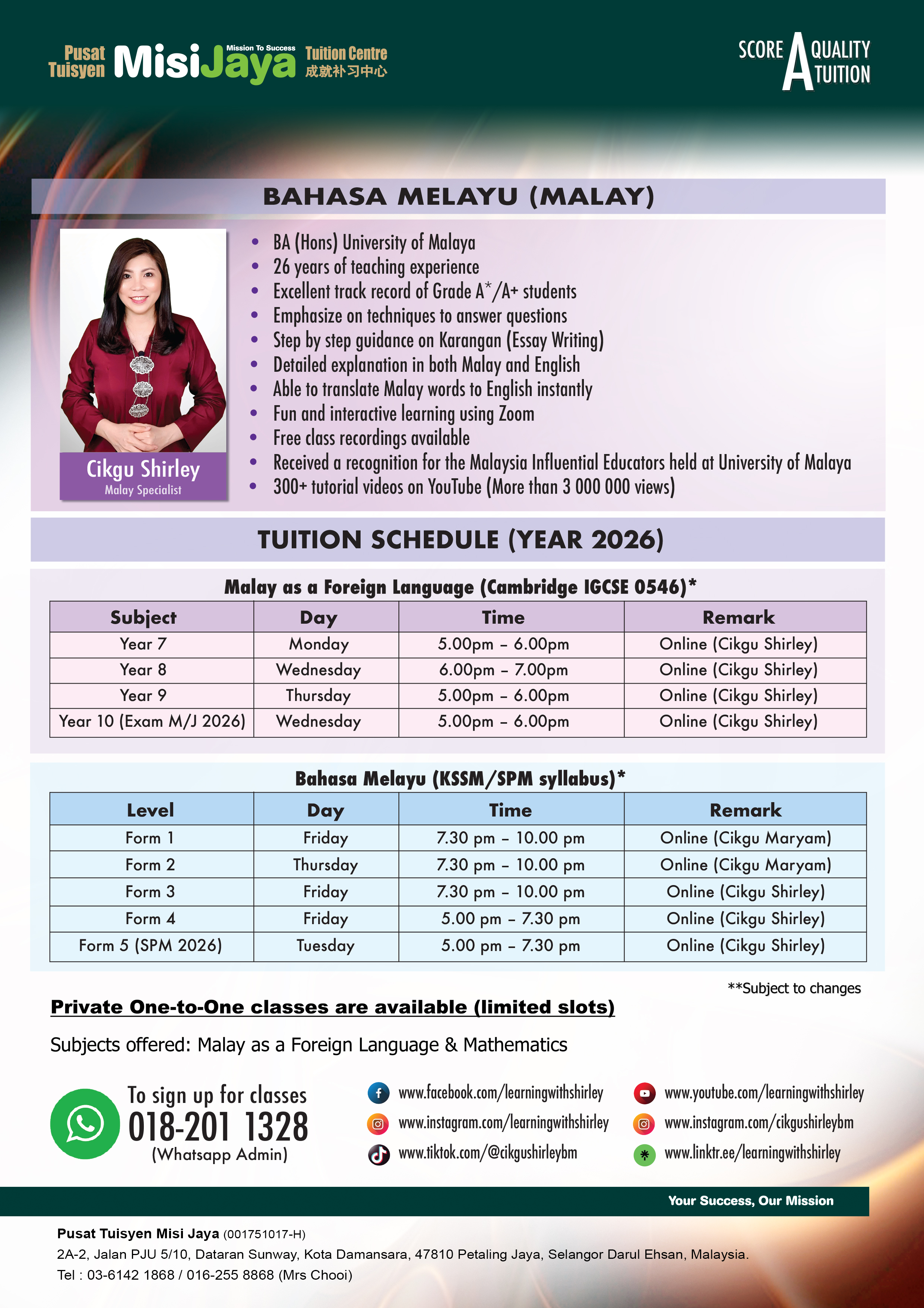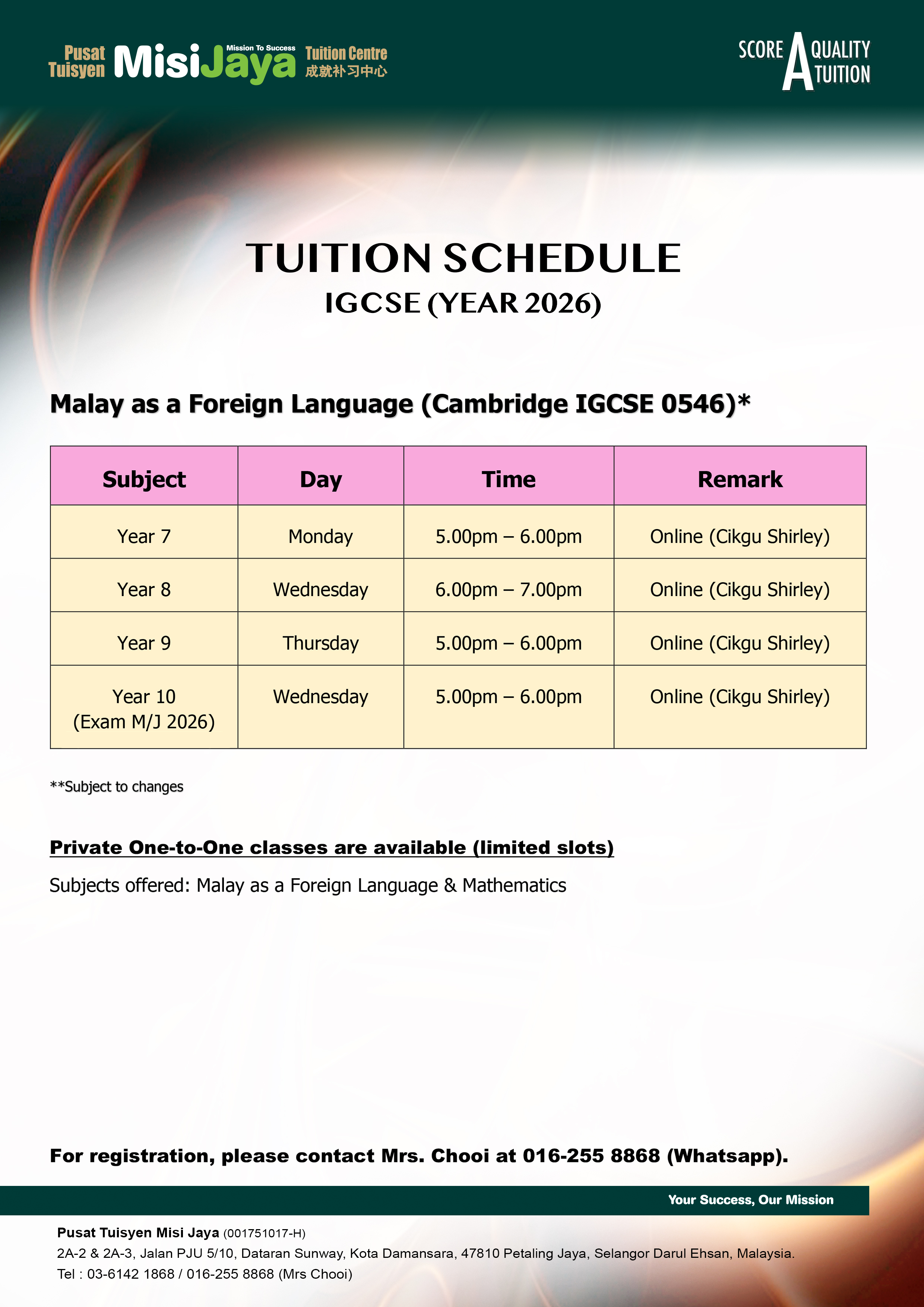 TUITION SCHEDULE For Year 2026